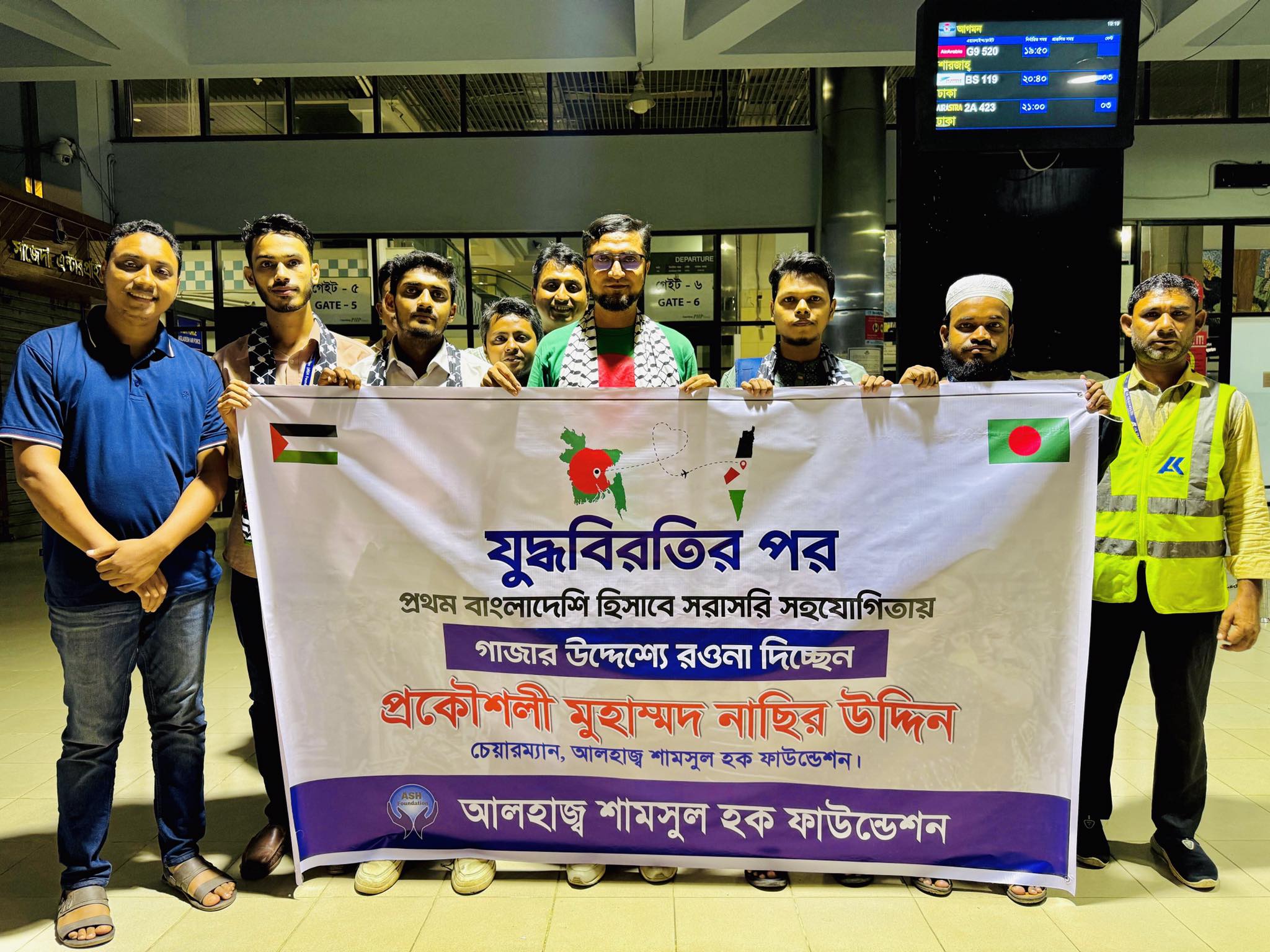 যুদ্ধবিরতির পর প্রথম বাংলাদেশি হিসেবে সরাসরি সহযোগিতার উদ্দেশ্যে গাজায় রওনা হয়েছেন প্রকৌশলী মুহাম্মদ নাছির উদ্দিন। তিনি আলহাজ্ব শামসুল হক ফাউন্ডেশনের চেয়ারম্যান।
